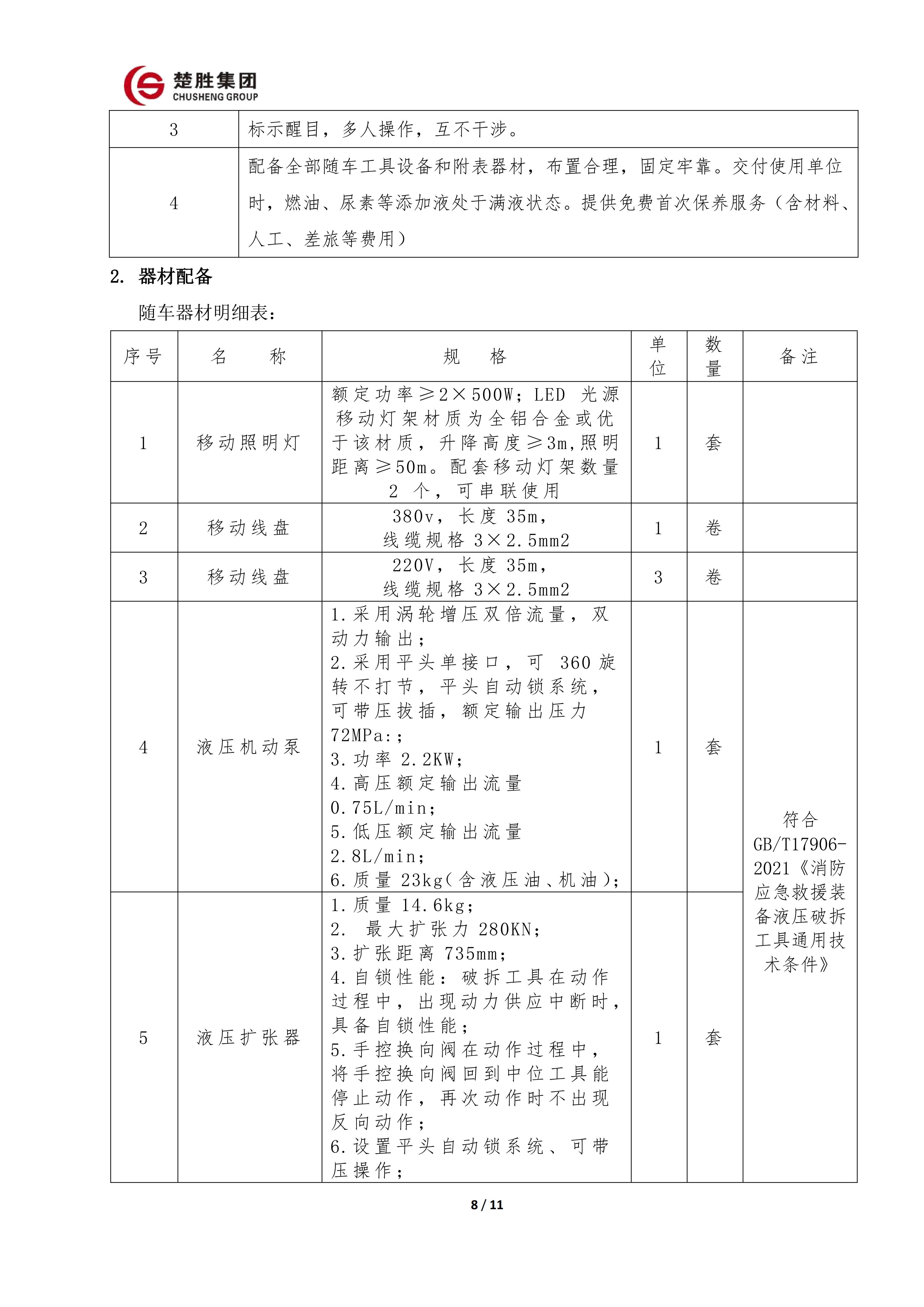 楚勝牌CSC5140TXFJY90/S6型搶險救援消防車